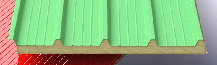 Pre-insulated metal panels with mineral fiber insulation for roofs (also available in the version with perforated internal support).