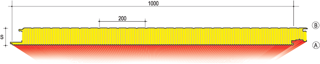 Panel Thickness (mm) | Material | Sheet thickness (mm) | Pitch 'L' in meters between the supports |