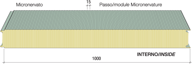 Pre-insulated metal panels with mineral fiber insulation for walls (also available in the version with perforated internal support).